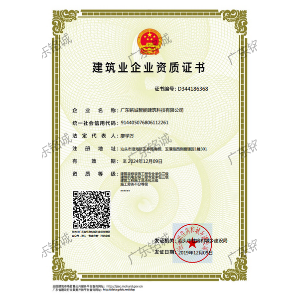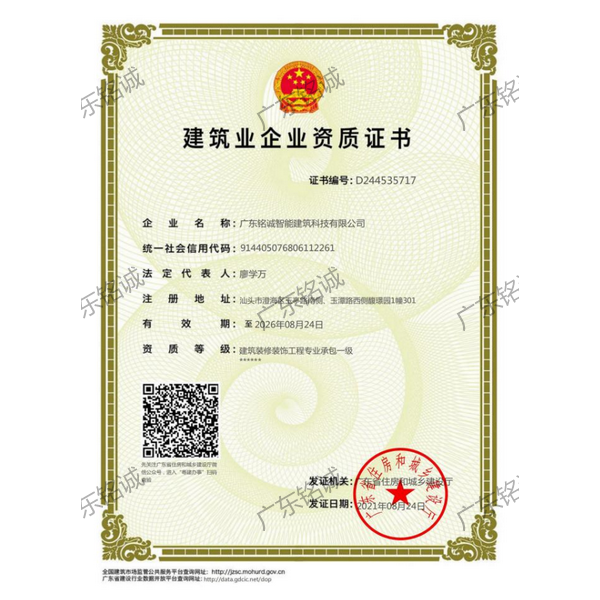 廣東銘誠智能建筑科技有限公司成立于2008年,公司注冊資金為6000萬元,集辦公裝修、酒店裝修、家庭裝修、軟裝裝飾、娛樂場所裝修為一體的裝飾公司,率先提出“創造現代人文空間,挑戰業界高峰”的雄壯口號,并以此為目標,完成了一大批具有影響力的大型公裝工程:其中包括廣州國際中醫藥展貿中心、奧飛澄海音樂廳、澄海區國家稅務局、澄海興信小額貸款、澄海潮商村鎮銀行、汕頭龍湖賓館、澄海豪庭大酒店、御園國際飲食城、澄海福晉軒酒家、享樂匯保健有限公司、假日商務酒店、尚景康園物業、星輝車模股份有限公司、奧飛動漫有限公司、香港國際玩具、汕頭萬基貿易有限公司、泰興源實業有限公司、汕頭皇冠玩具有限公司等;家裝工程包括南澳黃金海岸整幢的精裝房、中信華府、富春華庭、金信鳳凰名城、凱旋花園、中信金城、柏嘉半島、陽光海岸、金葉島等高等住宅。 ? 廣東銘誠智能建筑科技有限公司經過十余年的建筑裝飾裝修施工領域項目積淀,于2018年2月取得“建筑裝修裝飾工程專業承包二級”、“建筑機電安裝工程專業承包三級”、“建筑工程施工總承包三級”、“施工勞務不分等級”、“安全生產許可證”等專業資質,并于2021年8月建筑裝修資質正式升級為“建筑裝修裝飾工程專業承包一級”。這是對企業規模、工程業績、管理水平、誠信表現的肯定,是企業實力與能力的展現。 ? 公司每一項工程都始終堅持“精美設計、精心施工、確保合同承諾;勤奮開拓、追求突出、創造時代精品”的質量方針,力爭做一項工程,樹一座豐碑。 ? ?銘誠擁有一支由專業的營銷精英和客戶顧問組成的營銷隊伍,勤奮、敬業的每一位銘誠員工將本著“贏在別人休息時”的專業精神,為客戶提供全程營銷及售后服務,確??蛻舻暮戏ɡ?,提供體貼周到的服務,做到讓顧客滿意。 ? 銘誠擁有一批資老牌室內環境設計師,以“現代人文空間”為設計理念,為客戶提供人性化、差異化、智能化的室內環境設計服務,準確的將人性化特點與室內環境相融合,達到了“現代人文空間”的和諧統一。 ? ? ? ?自主創新、視社會責任為己任的精神使我們在發展的道路上屢獲殊榮:不斷提升的銘誠品牌知名度和美譽度,靠的是優質的產品,靠的是不斷提升的營業績,靠的是國內的核心技術和誠信的服務。相信通過銘誠人的努力,銘誠將會不斷以新的姿態為提升廣大消費者的生活質量做好服務,為中國裝飾行業設計創新做出突出貢獻。 ? ? “忘掉競爭、共